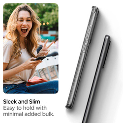 Subtelne etui Spigen Liquid Crystal do Samsung Galaxy S20 UltraMarka Spigen ma w ofercie subtelną serię etui Liquid Crystal. To idealne rozwiązanie dla osób lubiących eleganckie pokrowce. Minimalistyczna forma pozwala zachować design smartfonu w pierwotnej formie. Case zrobiony jest z termoplastycznego poliuretanu. Posiada wyśmienite właściwości tłumienia upadków, a zarazem nie pogrubia telefonu. Pokrowiec serii Liquid Crystal do Samsung Galaxy S20 Ultra sprawdzi się w większości zastosowań i będzie doskonałym rozwiązaniem dla wielu użytkowników. Cienkie i lekkie etui dla Samsung Galaxy S20 Ultra to Spigen Liquid CrystalWłaściwości materiału z którego wykonany jest kejs dają możliwość subtelnej ochrony telefonu. Dodatkowo w rogach znajdują się specjalne poduszki powietrzne znacząco zwiększające ochronę telefonu. Faktura pokrowca gwarantuje ergonomiczne trzymanie go w dłoni. Przyciski fizyczne są chronione i co istotne cały czas precyzyjnie działają. Specjalnie wyprofilowany kształt etui osłania również obiektyw głównej kamery. Case nie zwiększa o wiele wagi smartfonu, co jest priorytetem dla wielu osób. Spigen Liquid Crystal elegancja i spokój użytkowania Samsung Galaxy S20 UltraEtui Spigen Liquid Crystal, dzięki wymienionym wcześniej właściwością sprosta oczekiwaniom niejednego użytkownika Samsung Galaxy S20 Ultra. Nieduża waga oraz smukła budowa nie zmienia funkcjonalności smartfonu. Zwiększona ochrona osiągnięta została w elegancki sposób. Etui jest przezroczyste dzięki czemu wygląd smartfonu jest cały czas eksponowany, a jednocześnie zyskujemy zabezpieczenie przed zarysowaniami i upadkami. To wszystko mogąc wygodnie używać przycisków fizycznych oraz mając bezproblemowy dostęp do portów. Dodatkowo, montaż szkła hartowanego nie sprawi kłopotu, a powoduje jeszcze wyższy poziom ochrony. Warto sprawdzić przy wyborze szkła ochronnego czy ma informację o możliwości stosowania z etui, tzw. “case friendly”. Prosta i subtelna ochrona Twojego smartfonu w etui z serii Spigen Liquid Crystal to gwarant pewności dobrze zainwestowanych pieniędzy w ochronę Samsung Galaxy S20 Ultra.