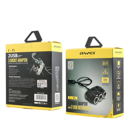 AWEI C-3S - Kompaktowy rozdzielacz z dwoma wejściami USB i trzema rozgałęzieniami gniazda zapalniczki samochodowej.