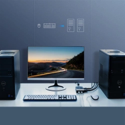 Wygodnie kontroluj dwa komputery przy pomocy jednej myszki, klawiatury oraz jednego monitora z wejściem VGA. Urządzenie obsługuje systemy operacyjne takie jak Windows 10/81/8/7/Vista/XP/Linux/Sun Solaris/Mac OS 10.3.9.