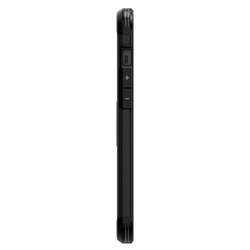 Etui z serii Tough Armor marki Spigen jest nowym pokrowcem firmy. Jego dwuczęściowa budowa wykonana jest z tworzywa termoplastycznego odpornego na ścieralność oraz wzmacniającej ramki poliwęglanowej. Wewnątrz pokrowca znajduje się wypełnienie w postaci pianki technologicznej, która zapewnia dodatkową warstwę ochronną od uderzeń, czy upadku urządzenia. Obudowa wyposażona w nóżkę, umożliwia bezproblemowe oglądanie tego, co się dzieje na wyświetlaczu telefonu bez konieczności jego trzymania. Case jest idealnie dopasowany i nie ogranicza możliwości ładowania bezprzewodowego. Nieco podniesiona forma obudowy wokół aparatu i ekranu chroni go przed zarysowaniami, unosząc telefon tuż nad powierzchnią płaską. Posiada osłony na przyciski i wycięcia na porty. Tough Armor, to obudowa, która została poddana testom sprawnościowym na upadek, 26 razy z wysokości do 1,2m, otrzymując tym samym amerykański certyfikat wojskowy MIL-STD 810G-516.6. CECHY PRODUKTU: ZESTAW ZAWIERA: