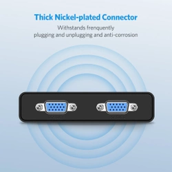 Inwestycja na lata Obudowa urządzenia została wykonana z tworzywa ABS. Zapewnia ono wyjątkową odporność na ciepło i niezrównaną wytrzymałość. Z kolei złącza VGA zostały pokryte niklową powłoką, dzięki której przetrwają nawet długotrwałe użytkowanie, a ponadto są zabezpieczone przed korozją. Rozdzielacz może Ci więc służyć bardzo długo - nie grozi mu zbyt szybkie zużycie lub zniszczenie. Specyfikacja