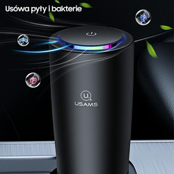 USAMS Przenośny Mini jonizator anionów Pm2,5. Zawiera wymienny filtr HEPA z aktywnym węglem. Oczyszcza powietrze np. w samochodzie lub małym pomieszczeniu.