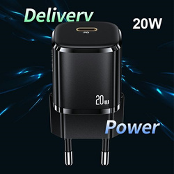 • Ładowarka Sieciowa USAMS 1xUSB-C T36 Mini 20W + Kabel USB-C Apple Lightning PD3.0 Fast Charging Czarny
