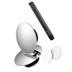 Baseus Full-view Blind-spot Mirror 2x dodatkowe samochodowe lusterko boczne wypukłe martwe poleMartwe pole – strefa, której nie widzisz w swoich lusterkach samochodowych – nie tylko przyczynia się do Twojego dyskomfortu podczas jazdy, ale też zwiększa ryzyko wypadku czy uszkodzenia pojazdu. Dzięki parze specjalnych lusterek firmy Baseus wyeliminujesz ryzyko i zyskasz większą pewność za kierownicą. Zestaw dwóch dodatkowych, szerokokątnych lusterek, które niwelują "martwe pole" w bocznych lusterkach samochodowych. Zwiększają kąt widzenia przez co poprawiają bezpieczeństwo na drodze i ułatwiają parkowanie. Dzięki zastosowaniu wyjątkowo mocnej taśmy 3M te dodatkowe lusterka mocno przylegają do bocznych lusterek auta. Obrotowa głowica pozwoli ci na dostosowanie ich ułożenia aby jak najlepiej wyeliminować "martwe pole". Lusterka są pokryte warstwą, która ułatwia ściekanie kropel wody podczas deszczu. Specyfikacja:
