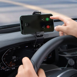 Baseus Big Mouth Pro uchwyt samochodowy klamra na deskę rozdzielczą Prowadzenie samochodu wymaga stałej koncentracji oraz doskonałej widoczności przez przednią szybę. Korzystasz z zestawu głośnomówiącego? Nawigacji GPS? Zadbaj o to, aby telefon był stabilny i dobrze widoczny. Dzięki uchwytowi marki Baseus zapewnisz sobie komfort podróżowania bez ryzyka uszkodzenia sprzętu i utraty panowania nad kierownicą. Specyfikacja: