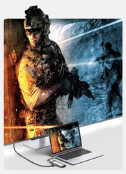 Aż 8 dodatkowych portów HUB daje do dyspozycji swojego użytkownika 8 portów. 3 wtyczki USB, 1 USB Typ C, 1 USB Typ C Power Delivery, HDMI, 2 sloty na karty pamięci i RJ45 do podłączenia się kablowo do internetu. Zasilanie w standardzie Power Delivery 100 W Dzięki obecności złącza USB Typ C Power Delivery, możesz ładować swoje urządzenie w czasie kiedy adapter jest do niego podłączony. Twój laptop może być stale podłączony do zasilania a telefon ładować baterię. Podłączenie dodatkowego ekranu Złącze HDMI przesyła wyrazisty i bogaty w szczegóły obraz w jakości 4K z odświeżaniem do 30 Hz. Działa w trybie rozszerzenia pulpitu lub lustrzanym. Dzięki temu możesz podłączyć drugi monitor lub rzutnik i oglądać filmy, grać lub prowadzić prezentacje na większym ekranie. Błyskawiczne przesyłanie danych 3 złącza USB 3.2 Gen 1 rozwiązują problem zbyt małej liczby portów w urządzeniu i umożliwiają przesyłanie danych z szybkością do 5 Gbps. Za ich pomocą skorzystasz z dodatkowych akcesoriów takich jak np. zewnętrzne dyski twarde, myszy, klawiatury, drukarki, pendrive i wiele innych. Podłączenie do internetu za pomocą kabla Kiedy potrzebujesz stabilnego i szybkiego połączenia z internetem, jedynym wyjściem jest podłączenie do sieci za pomocą kabla. Adapter działa jako zewnętrzna karta sieciowa i zapewnia dostęp do połączenia sieciowego 1 Gbps. To idealne narzędzie do oglądania filmów w wysokiej jakości w serwisach VOD takich jak Netflix, HBO GO czy Player. Praca z dwoma kartami pamięci na raz Tuż obok portu HDMI znajdują się dwa sloty na karty pamięci SD i microSD. Co ważne HUB pozwala na jednoczesny ich odczyt w tym samym czasie. Inne adaptery posiadają czytniki, które obsługują tylko 1 kartę na raz. Ten jest wyjątkiem i daje Ci większą swobodę działania. Rozszerz możliwości telefonu i tabletu Laptopy i tradycyjne komputery to tylko część z urządzeń, które są obsługiwane przez ten adapter. Równie łatwo podłączysz do niego swój telefon lub tablet. Teb HUB przekształci Twoje urządzenie mobilne w sprawną stację roboczą i umożliwi pracę jak na prawdziwym komputerze. Podłączyć myszkę, klawiaturę i dysk zewnętrzny. A jeśli Twój telefon ma taką funkcję to nawet monitor. Kompatybilny z wieloma systemami operacyjnymi Niezależnie od tego na jakim systemie pracujesz HUB będzie z nim działać od razu po podłączeniu. Tryb Plug&Play to gwarancja, że żadne dodatkowe sterowniki nie są potrzebne. Jest gotowy od razu po wyjęciu z pudełka i prosty w obsłudze. Metalowa obudowa Cała elektronika sterująca adapterem kryje się w eleganckiej aluminiowej obudowie. HUB prezentuje się świetnie, a jego wygląda od razu mówi, że to profesjonalny sprzęt z wyższej półki. Dzięki swoim małym rozmiarom doskonale komponuje się z innymi urządzeniami. Zmieści się wszędzie i jest łatwy w przenoszeniu. Aluminiowa obudowa jest odporna na rdzewienie i przebarwienia. Całe urządzenie przeszło szereg testów bezpieczeństwa, a układy sterujące dokładnie zarządzają przepływem danych i energii. Wbudowane zabezpieczenia Wszystkie porty są zarządzane przez indywidualne układy sterowania. Wykrywają one parametry podłączonego urządzenia i dostosowują zasilanie do ich potrzeb. Adapter chroni je m.in. przed zwarciem, przegrzaniem, przeładowaniem i całkowitym rozładowaniem. ![]()