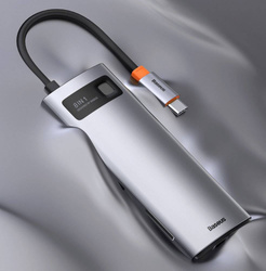 Podaj numer ID produktu: | Baseus Metal Gleam 8w1 wielofunkcyjny HUB USB Typ C - USB Typ C Power Delivery 100 W / HDMI 4K 30 Hz / czytnik kart SD i microSD / 3x USB 3.2 Gen 1 / RJ45 1 Gbps Szary (CAHUB-CV0G)