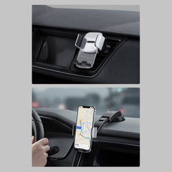 Baseus 2w1 uchwyt samochodowy na kokpit i kratkę wentylacji czarny (SUYK000001) Uchwyt samochodowy do zamontowania na desce rozdzielczej auta lub w kratce wentylacyjnej. Gadżet jest niezwykle prosty w obsłudze, wystarczy odłożyć na niego telefon i zacisnąć szczęki. Posiada trójkątną konstrukcję zapewniającą stabilność podczas jazdy, duże możliwości regulacji (w tym obrotu o 360 stopni) oraz gumowe nakładki, dzięki którym nie porysujemy żadnego elementu auta. Do tego specjalne wycięcie, które umożliwia podłączenie ładowarki. Prosta obsługa