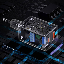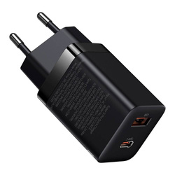 Baseus Super Si Pro szybka ładowarka USB / USB Typ C 30W Power Delivery Quick Charge czarny (CCSUPP-E01) Inteligentna ładowarka sieciowa ze złączem europejskim oraz wsparciem dla licznych technologii szybkiego ładowania. Kompaktowy gadżet wyposażony w 2 porty: USB Typ C oraz USB. Doskonały do odnawiania energii urządzeń mobilnych takich jak smartfony, tablety czy nawet laptopy. Kompendium szybkiego ładowania – Akcesorium wspiera wszystkie najpopularniejsze technologie szybkiego ładowania - Power Delivery 3.0 (PD 3.0) oraz Quick Charge (QC 3.0) Błyskawiczne odnawianie energii – Dzięki wspomnianym wariantom szybkiego odnawiania energii Twój sprzęt może odzyskać pełnię mocy nawet kilka razy szybciej niż przy standardowych ładowarkach. Również dla laptopów – Technologia PD umożliwia ładowanie nie tylko smartfonów, ale również laptopów wyposażonych w port USB Typ C. Z odpowiednim kablem, adapter zapewnia szybkość ładowania porównywalną do klasycznego zasilacza. 2 urządzenia jednocześnie – 2 porty umożliwiając podpięcie, a co za tym idzie, odnawianie energii 2 urządzeń w tym samym czasie! Nie musisz czekać, aż ładowanie pierwszego sprzętu się zakończy, aby podłączyć drugi. Wysokiej jakości materiały – Wykonana z połączenia ogniotrwałych i wytrzymałych materiałów: PC oraz ABS. Odpornych na upadki i nadmierne nagrzewanie. Inteligentny chip – Akcesorium posiada inteligentny układ zarządzania dopasowujący optymalne napięcie do konkretnego sprzętu. Twoje urządzenie dostanie dokładnie tyle prądu ile potrzebuje, aby odzyskać siły w jak najkrótszym czasie, bez jednoczesnego ryzyka uszkodzenia baterii. Kilka poziomów zabezpieczeń – Między innymi przed przeładowaniem, przegrzaniem i krótkimi spięciami. Kompletna ochrona zarówno akcesorium, jak i ładowanych sprzętów. Z myślą o baterii i rachunkach za prąd - Gdy Twój sprzęt zostanie już w pełni naładowany, ładowarka automatycznie się wyłączy, dbając w ten sposób o akumulator ładowanego urządzenia oraz oszczędność energii. Szeroki zakres napięcia zasilania – Zakres napięcia na poziomie 100 – 240V pozwala na bezproblemowe korzystanie z adaptera na całym świecie. Z odpowiednią przejściówką, możesz zabrać go w każdą podróż! Specyfikacja:
