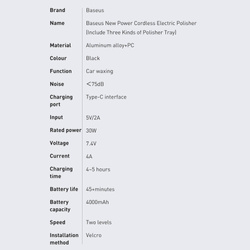 Podaj numer ID produktu: | Baseus bezprzewodowa elektryczna maszyna polerska 30W 4000mAh czarna (CRDLQ-B01)