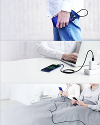 Elita wśród kabli Przewód może pochwalić się eleganckim designem, wysoką jakością wykonania i niezwykła trwałością. Wyjątkowa wytrzymałość Pleciony nylonowy kabel jest niezwykle wytrzymały, a do tego nie plącze się. Szybkość i stabilność Port USB 2.0 i natężenie w wysokości 3 A gwarantują błyskawiczne ładowanie i transfer danych. Dbałość o słabe strony Najbardziej newralgiczny punkt kabla - łączenie wtyczki i przewodu został dodatkowo wzmocniony. Bezpieczeństwo przede wszystkim Inteligentny chip zarządzania dopasowuje napięcie do danego sprzętu, a tym samym chroni go przed przeładowaniem czy przepięciem.